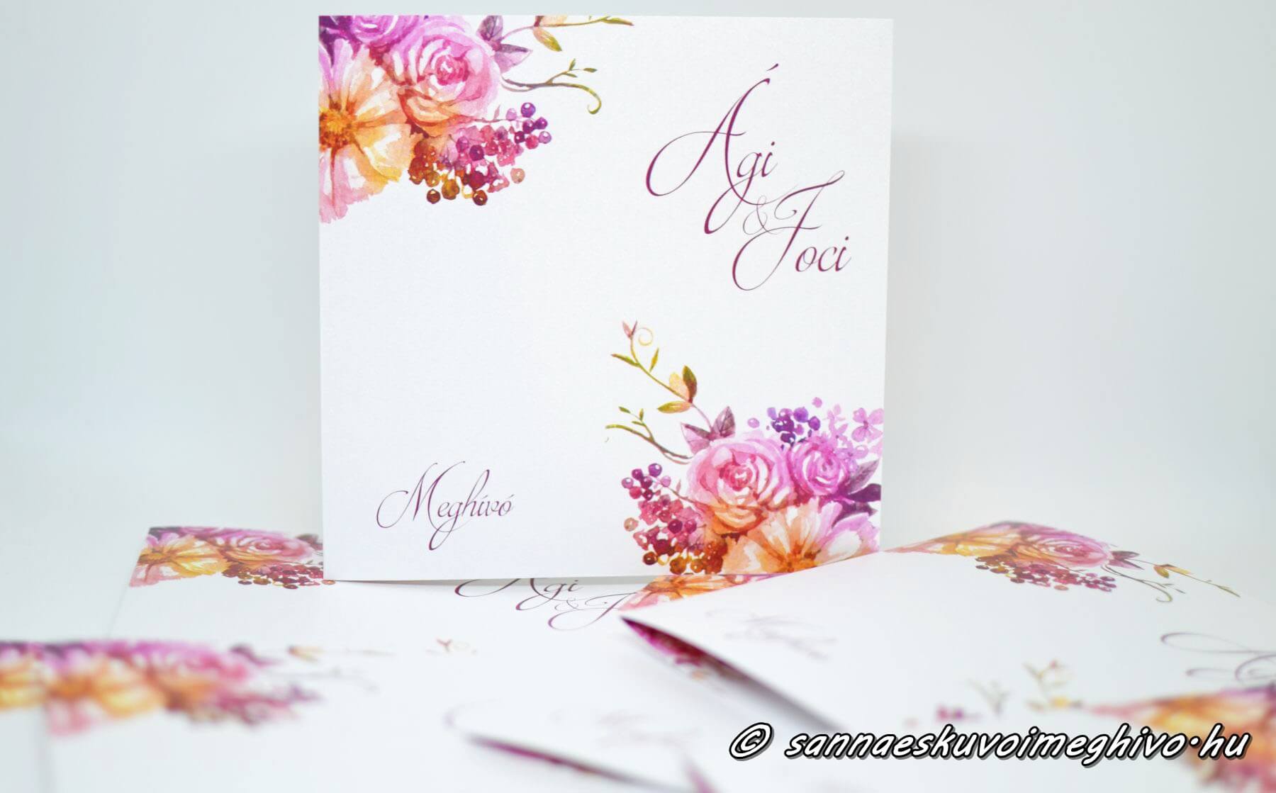 Ha szeretitek a természetet, a virágokat, az esküvőtökön is sok színes virág lesz, akkor ez a meghívónk biztosan tetszeni fog Nektek.