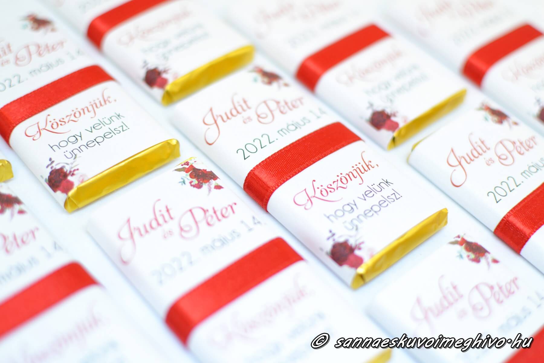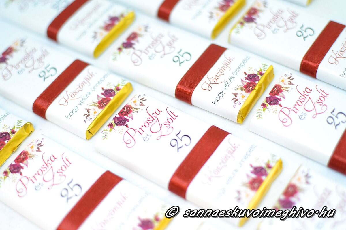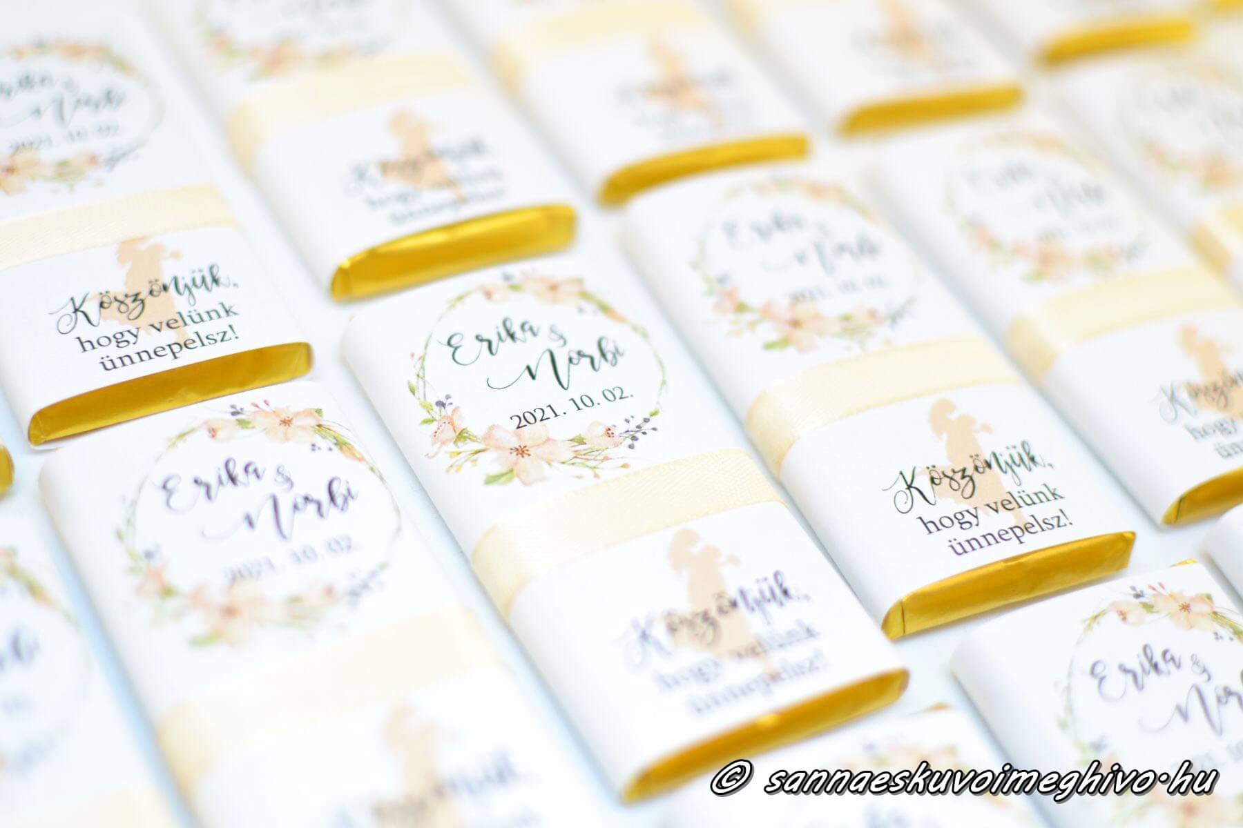 💡 Extra tipp: Kombináld ültetőkártyával! Ha a csoki köszönetajándékra a vendégek neve is rákerül, egyben praktikus és stílusos Csokoládé Ültetőkártya lesz az eredmény.