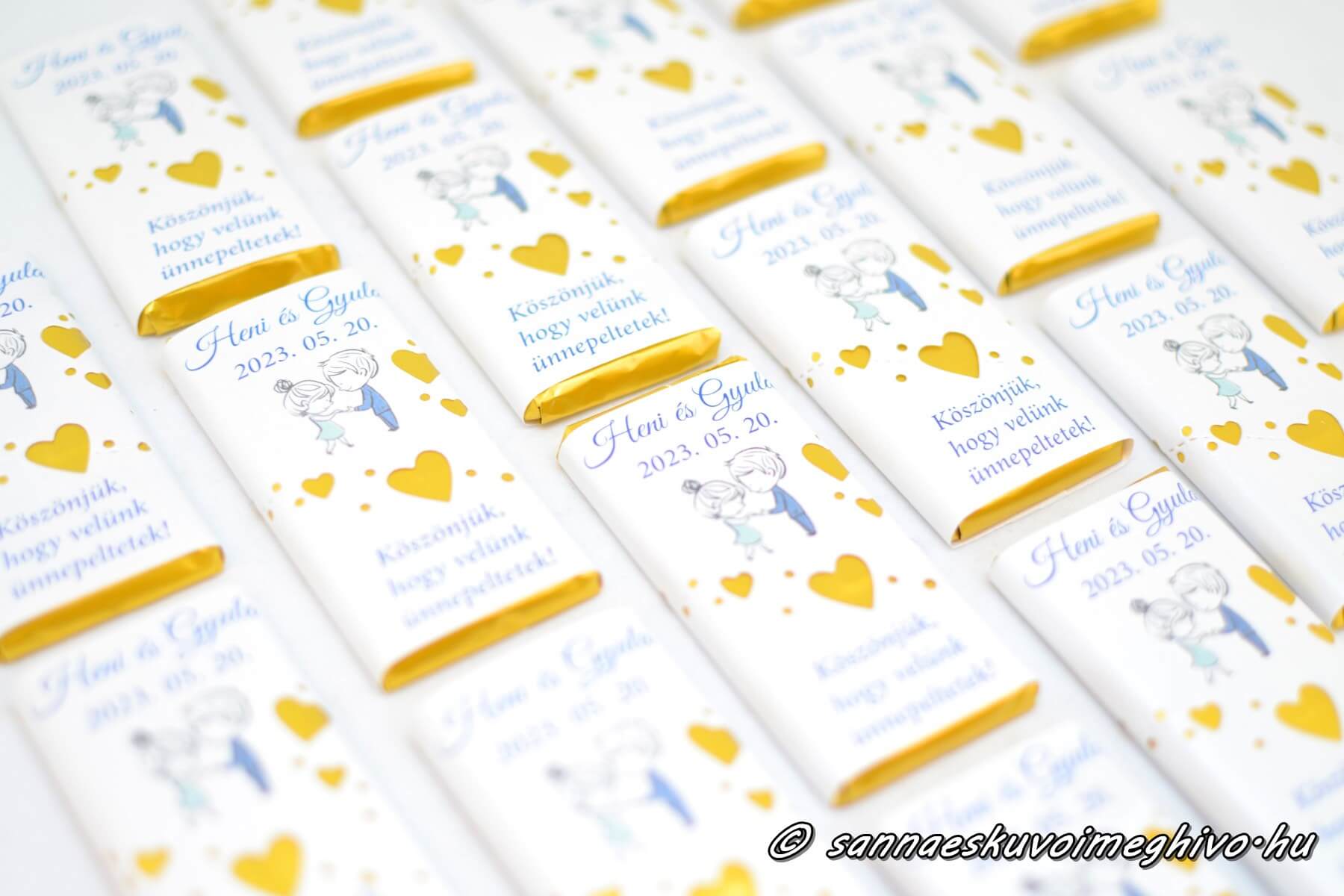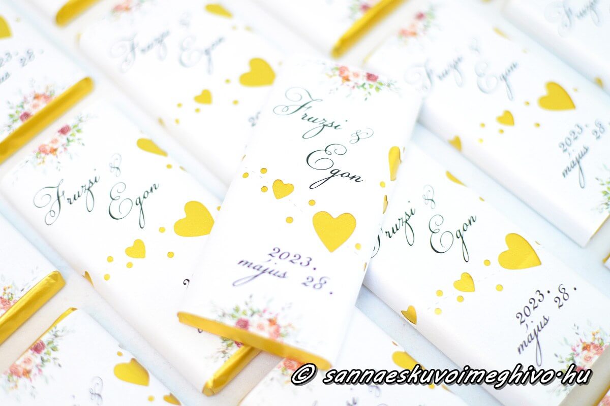💡 Extra tipp: Kombináld ültetőkártyával! Ha a csoki köszönetajándékra a vendégek neve is rákerül, egyben praktikus és stílusos Csokoládé Ültetőkártya lesz az eredmény.