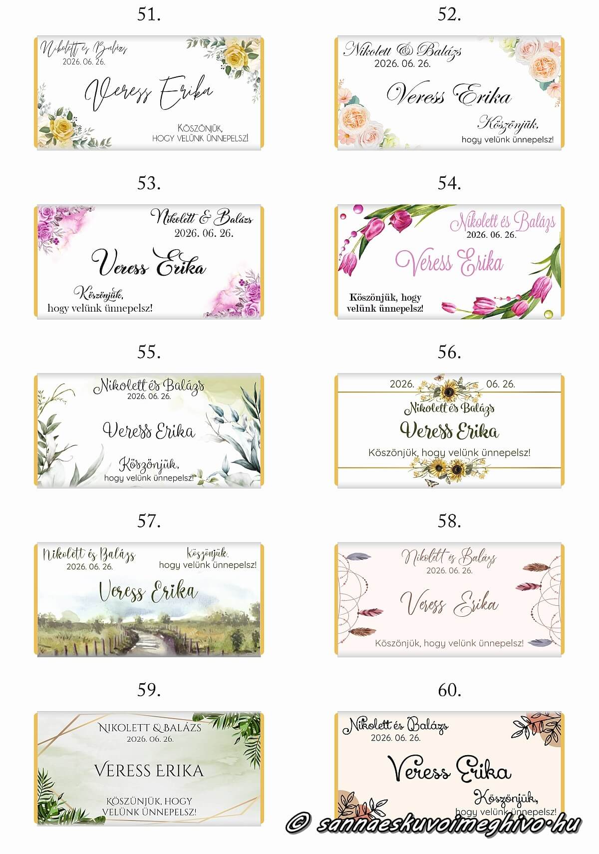 ✔ Színvilág és dizájn – A csomagolás minden részlete az esküvőtök hangulatához igazodik. A papír színe, mintája, betűtípusa és grafikája mind hozzátok passzol majd.
