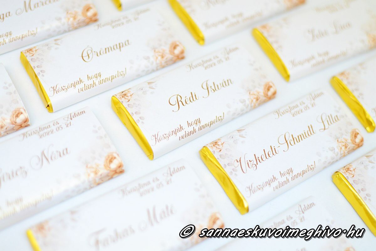 Egy kis csoki és egy nagy ölelés! Egy esküvő tele van szeretettel, és mi lehetne édesebb köszönetajándék, mint egy finom csokoládé? A Csokoládé Ültetőkártya nemcsak figyelmesség, hanem egy apró, mégis emlékezetes meglepetés a vendégeidnek, amit jó eséllyel el is tesznek emlékbe (vagy azonnal elmajszolnak).