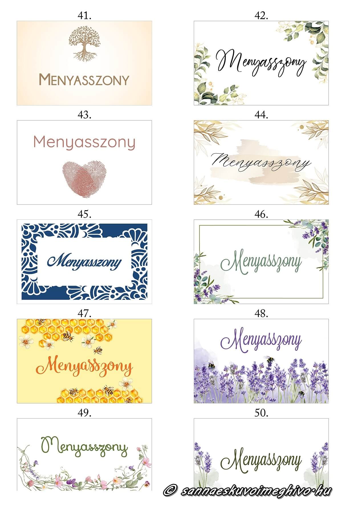 – Kivitelezés: az ültetőkártyát teljesen készen adom át vagy postázom – neked semmi dolgod vele, csak elhelyezni az ünnepi asztalokra.