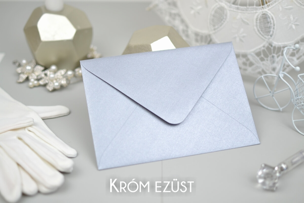 Egy esküvői boríték nem csupán csomagolás, hanem az első benyomás az esküvői meghívódról. A gyöngyházfényű, elegáns C6 méretű boríték kifinomultságot és stílust sugároz, bármilyen meghívóhoz tökéletesen illik. A finoman csillogó felület és a letisztult forma már kézbe véve is sugallja, hogy egy különleges eseményre szóló meghívót tart a vendég. A klasszikus V alakú záródás az időtlen eleganciát hordozza.