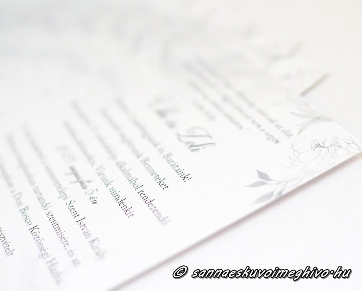 Az Ezüst szirmok esküvői meghívó maga a visszafogott elegancia – egy letisztult, egylapos meghívó, amit a finom részletek tesznek különlegessé.