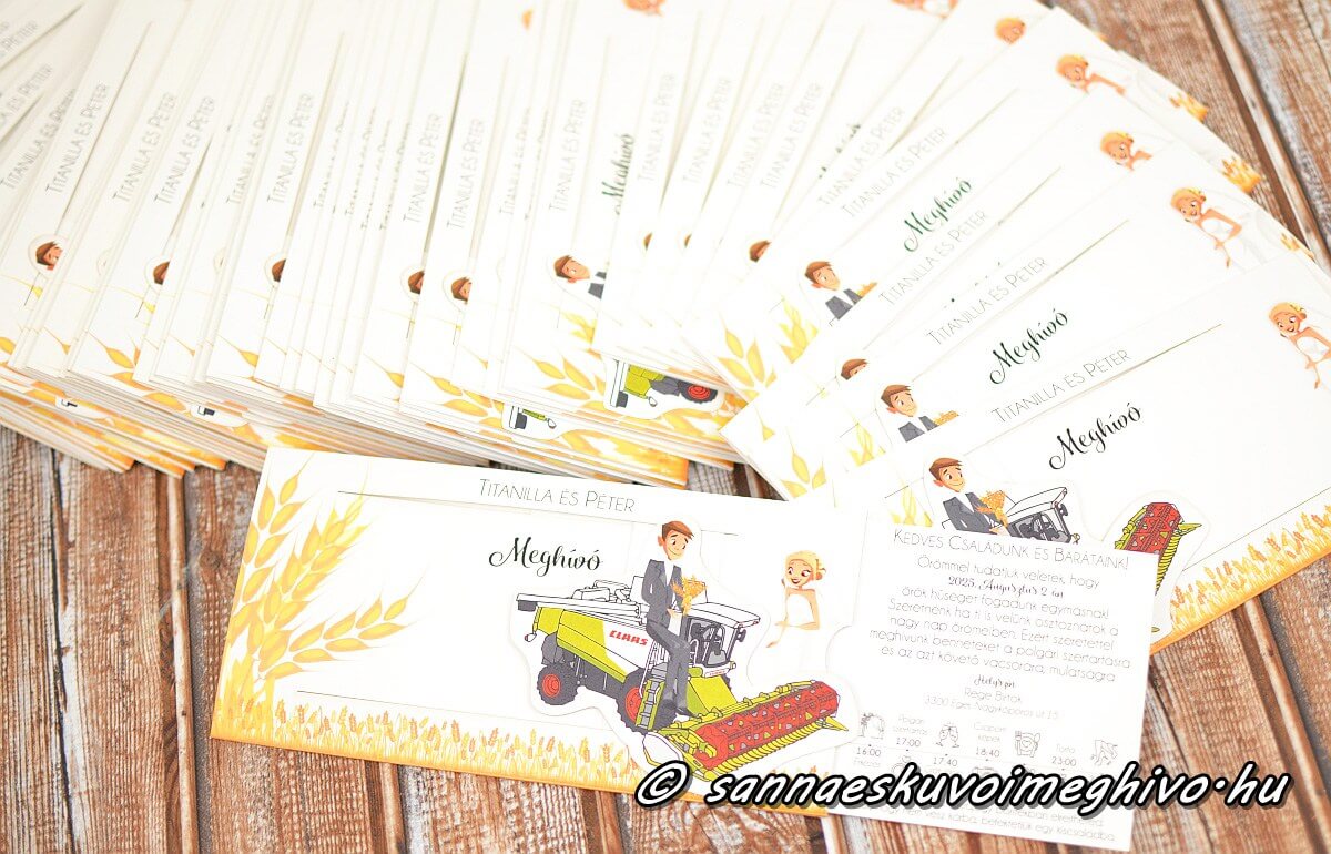 Az esküvői meghívó mérete: 10 x 21 cm.
