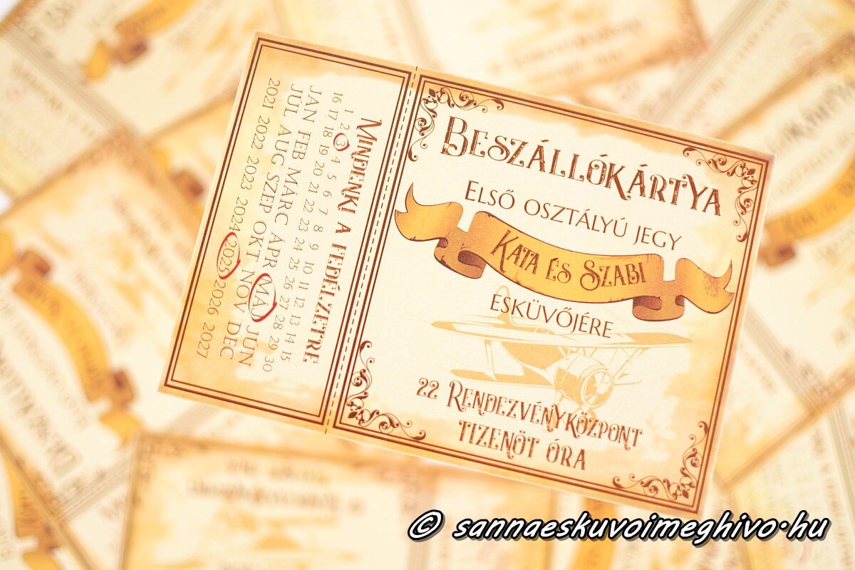 Amikor kézbe veszed ezt a meghívót, érezni fogod a múlt érintését. Átadni ezt a meghívót olyan, mintha egy exkluzív belépőt nyújtanál át egy felejthetetlen eseményre. Aki pedig megkapja, egy pillanat alatt átérzi az esküvőtök különleges, meghitt hangulatát – mintha már most elindult volna veletek ezen a csodás utazáson, fent a magasban.