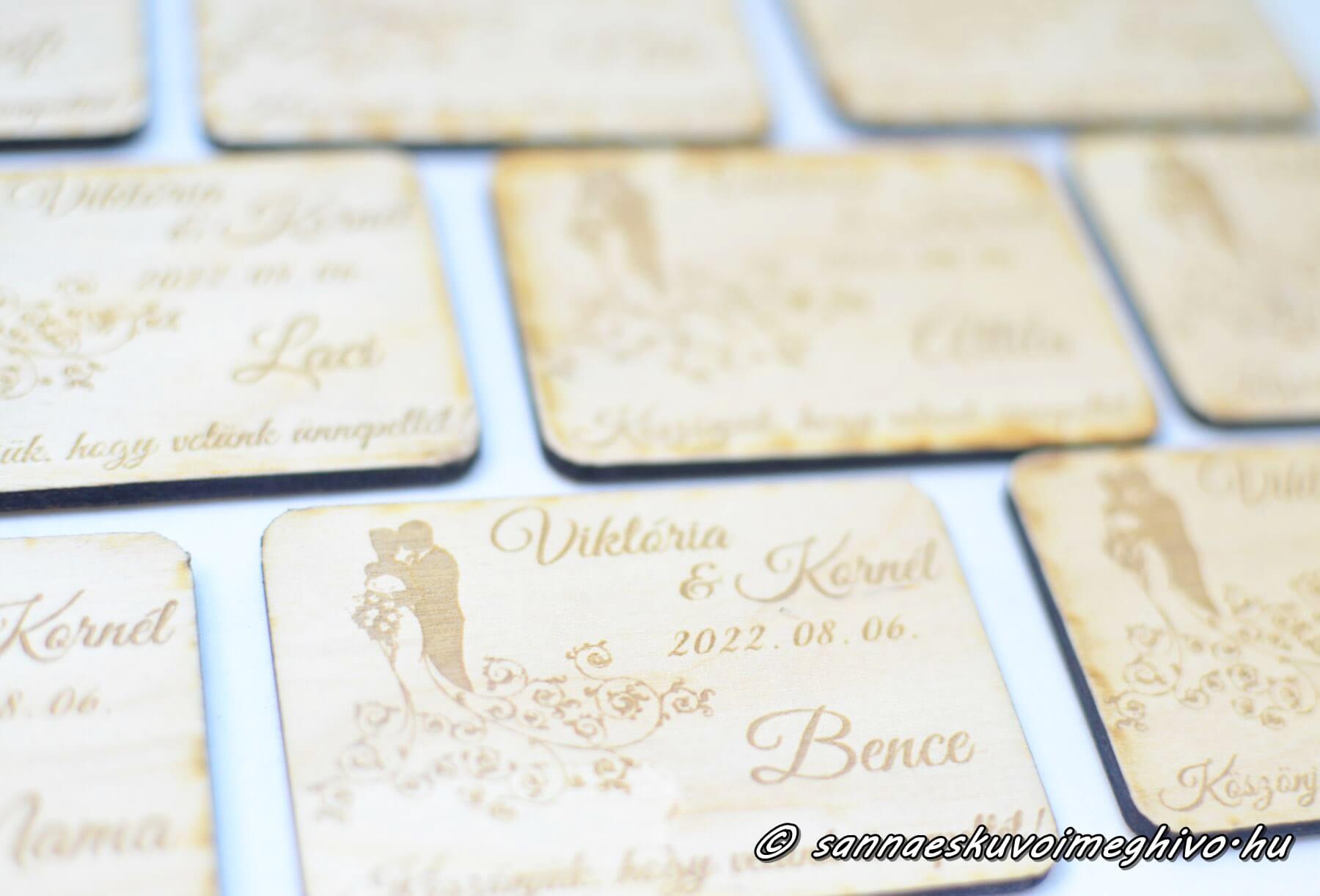 Természetesen a nevetek és a nagy nap dátuma is helyet kap a hűtőmágnesen 🙂