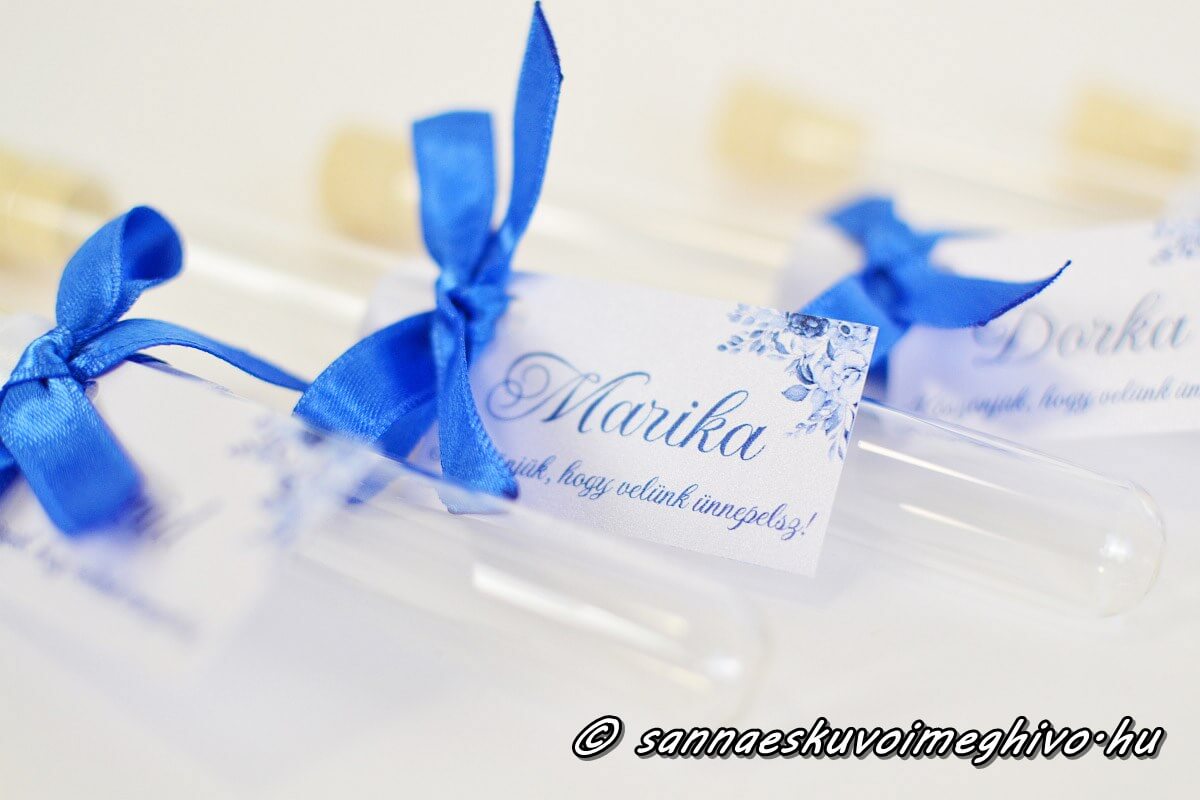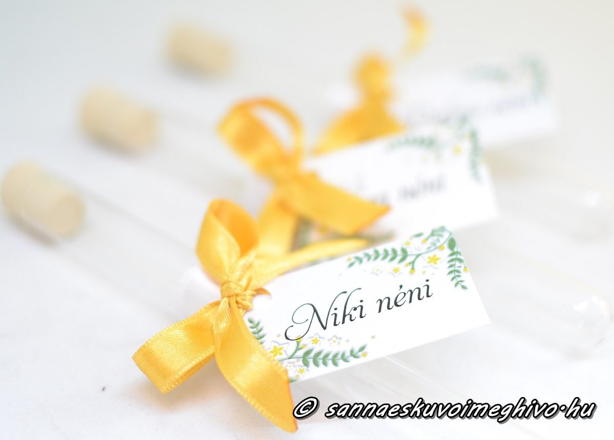 A képeken láthatod, hogy többféle módon is a lakodalmadra tudod szabni a Kémcsöves köszönetajándékodat.